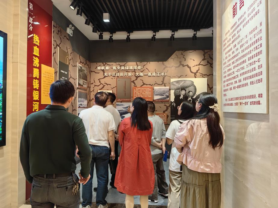 韶山灌區(qū)作為我省最大引水灌溉工程,以其186公里長干渠、26座渡槽、10處隧洞,以長藤結(jié)瓜式的蓄水、灌溉系統(tǒng),確保三湘大地湘潭、長沙、婁底三地七縣(市、區(qū))100萬畝農(nóng)田半個(gè)世紀(jì)以來旱澇保收、五谷豐登、六畜興旺。韶山灌區(qū)陳列館位于韶山市銀田鎮(zhèn)“韶山銀河”渡槽出口處,館內(nèi)運(yùn)用圖片、展板、雕塑、實(shí)景沙盤模型等設(shè)備,多角度、真實(shí)地再現(xiàn)了韶山灌區(qū)修建時(shí)的壯闊場面,全方位展示韶山灌區(qū)建設(shè)歷史、文化底蘊(yùn),為我們此次鄉(xiāng)土地理研習(xí)之旅提供了灌區(qū)前世今生的資料。