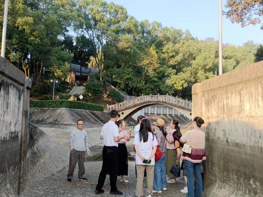 教研組還參觀了陳列館附近的水渠,這時(shí)正值秋冬枯水季節(jié),人可在水渠里站立,老師們在這里激烈地探討,與地理書中的知識(shí)聯(lián)系起來。