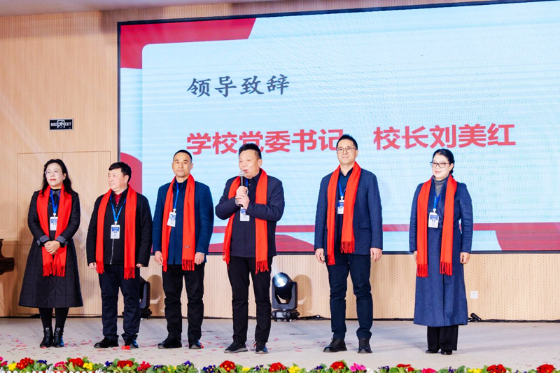 晚上七點(diǎn),聯(lián)歡晚會(huì)正式開始。伴隨著熱烈的掌聲,四位主持人尹航、宋迪、胡偉捷、徐藝珊閃亮登場。在精彩的開場白之后,學(xué)校全體校領(lǐng)導(dǎo)一齊登臺(tái),向老師們送上新年的美好祝愿。他們系著鮮艷的紅圍巾,一個(gè)個(gè)精神煥發(fā)。學(xué)校黨委書記、校長劉美紅發(fā)表了熱情洋溢的新年致辭,他總結(jié)了潭中在過去一年取得的優(yōu)異成績,并對(duì)新一年學(xué)校的發(fā)展充滿信心與希望。他代表學(xué)校黨政工領(lǐng)導(dǎo)班子向全體教職員工致以新年的問候。